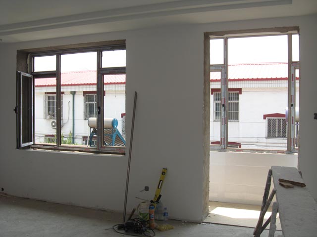 (4)斷橋彩色鋁門窗和普通彩色鋁門窗的組裝技術要求特點:斷橋彩色鋁門窗是通過1.4mm或1.4mm以上的壁厚切成45度角,拐角處用3mm以上的專用插件通過門窗組裝成套設備。擠壓定位,而普通門窗則是用1mm左右的普通角鋁用拉鉚釘連接而成,其牢固安全程度則差,但造價低。而組裝好的彩色斷橋鋁門窗成人站立于上走動也不會有問題。成套設備組裝出來的和用人工現場操作組裝的在技術上要求上都相差甚遠。專用斷橋鋁型材和普通鋁型材是不能比較的。